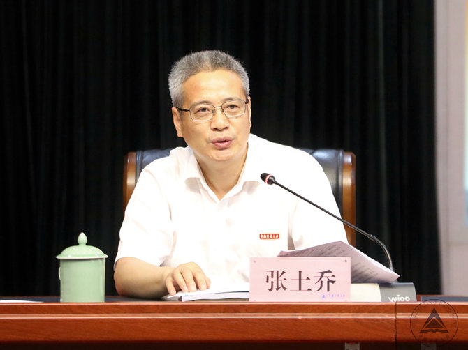 黨委書記張土喬在會上指出,今年開學以來,全校上下以習近平新時代中國特色社會主義思想為指導,學習貫徹黨的十九大精神和全國教育大會精神,圍繞學校2019年工作任務和目標,砥礪奮進,真抓實干,各項工作有進展、有成效、有突破,高標準、高質量地推動學校發展。他強調,當前學校正處在爬坡過坎、跨越發展的關鍵期,全體黨員干部要以開展“不忘初心、牢記使命”主題教育為引領,按照“守初心、擔使命、找差距、抓落實”的總要求,不斷推進各項工作的落實。一要思想引領,確保主題教育開展有特色、有成效,為學校發展提供堅強保證;二是樹立新思想新觀念,實現改革創新大跨越,不斷提升學校影響力;三要問題導向,找準制約學校發展的“卡脖子”問題,深挖細查動真碰硬,精準施策有的放矢,努力補齊制約學校發展的短板;四是要狠抓不懈,實現作風轉變有形象,切實發揚求真務實、樂于奉獻的工作作風;五是要只爭朝夕,確保工作業績與安全穩定雙落實,充分利用假期,加速推進,比拼趕超,同時排除隱患,確保安全穩定。他希望,全體黨員干部要不忘初心、牢記使命,以永不懈怠的精神和一往無前的勇氣,凝心努力,全力以赴,扎實推進學校2019年各項工作任務,為實現學校博士點申報目標和高質量發展努力奮斗。