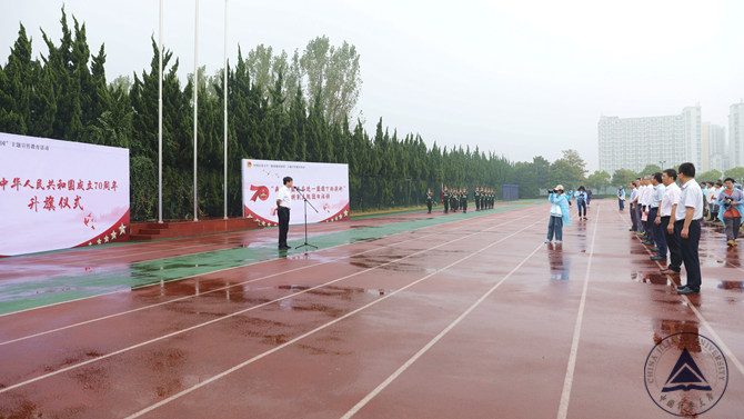 10月1日早晨8時,在北操場,學校全體黨政領導班子、各學院負責人與近千名學生代表匯聚在一起,舉行莊嚴神圣的慶國慶升國旗儀式。活動由黨委副書記程剛主持。師生們統一著淺色上衣,深色下裝,莊嚴而肅穆。我校學子們臉頰兩側貼著鮮紅的五星紅旗貼紙,深情而熾熱地凝望著國旗緩緩升起的地方。