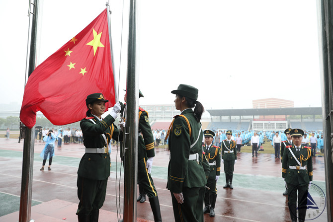 “這是一場讓我感動的升旗儀式,師生對祖國母親的深情和熱愛足以抵擋一切風雨。”17級標準化3班羅斯琰說。