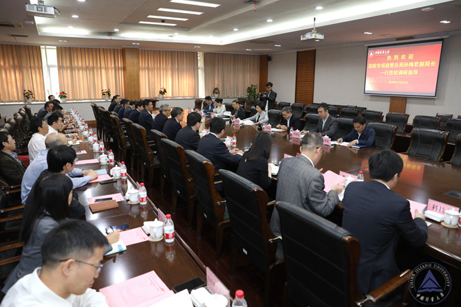 10月20日上午,國家市場監督管理總局副局長、黨組成員孫梅君來我校調研考察,總局人事司司長方躍林,浙江省市場監督管理局黨委委員、副局長盧永福,浙江省教育廳黨委委員、副廳長于永明,總局人事司處長張國悅,浙江省教育廳高教處處長呂華 、副處長藍鄧駿等陪同調研。