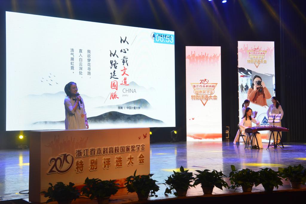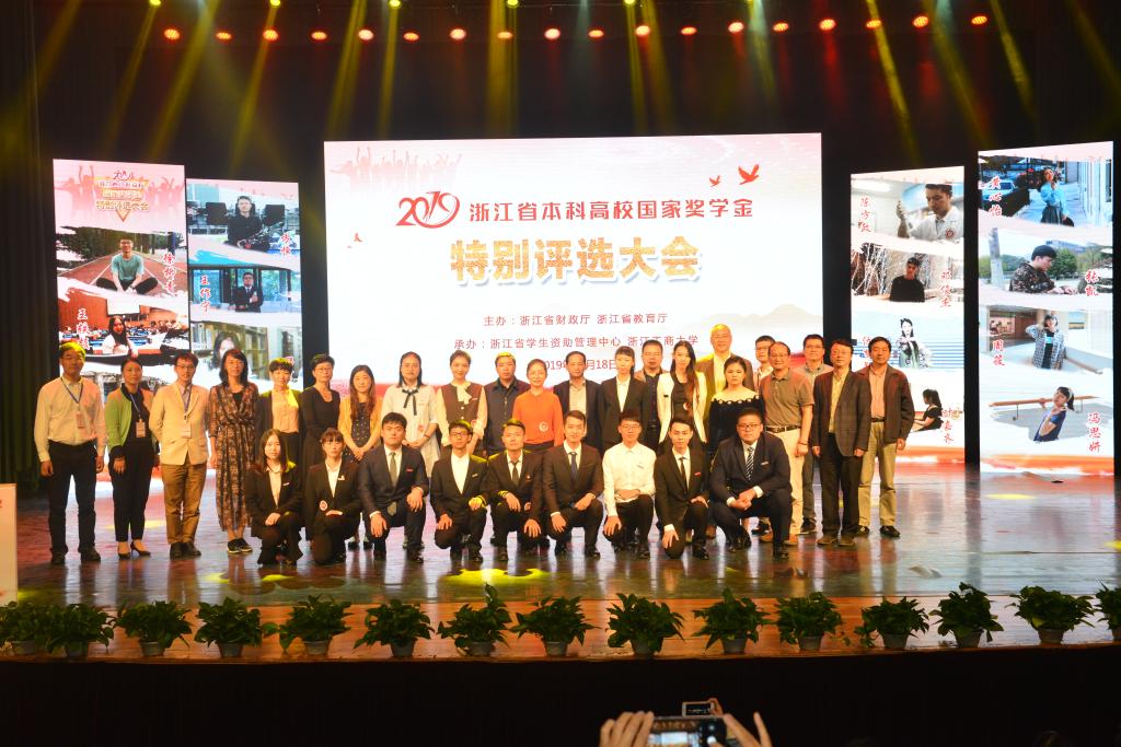 國家獎學金是中央政府出資設立,用于獎勵高校全日制本專科學生中特別優秀的學生,是目前各類學生獎學金榮譽中級別最高的獎項。浙江省從2009年開始率先探索組織國家獎學金特別評選活動,每年從中央下撥的本??茋要剬W金名額中專門預留省級特別推薦名額,由全省高校推薦成績優秀并在道德風尚、學術研究、學科競賽、創新發明、社會實踐、社會工作、體育競賽、文藝比賽等某一方面表現特別突出學生,通過專家遴選進入特別評選大會,優中選優推選樹立一批德智體美勞全面發展的優秀學生典型。2017年,我校量新學院王哲同學獲得該榮譽。2019年,人文與外語學院酈寅同學代表學校再次獲此榮譽。