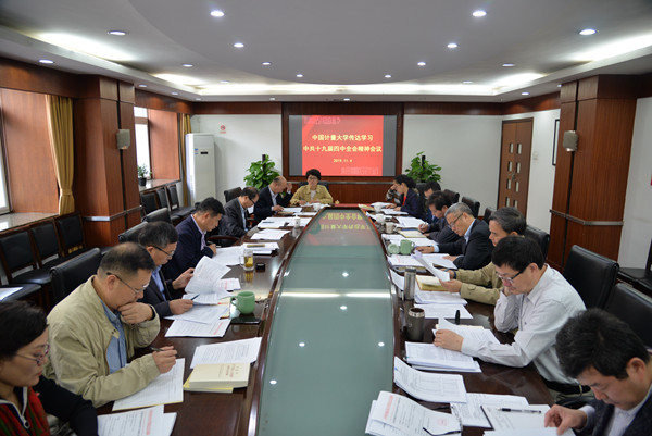 11月4日上午,校黨委理論學習中心組舉行2019年第十六次集體學習,傳達學習黨的十九屆四中全會精神。黨委書記張土喬主持會議并講話。宋明順、肖剛、程剛、俞曉平、王小華、金尚忠、王迪釗等校黨政領導班子成員出席會議并發言。