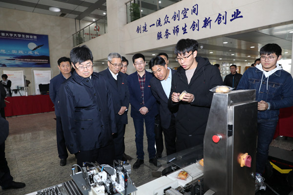 朱從玖一行在校領導的陪同下參觀了校科技創新創業平臺——浙江省功能材料及其計量檢測技術協同創新中心、中國計量大學國家大學科技園,并與相關部門和學院負責人進行了座談。
