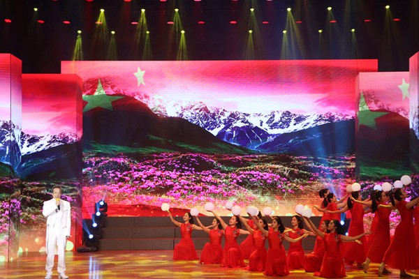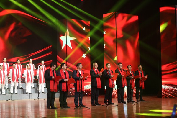 在校領導們的帶領下,全場隨著《沒有共產黨就沒有新中國》的歌聲打著節拍,氣氛熱烈,掌聲滿滿,將晚會推向高潮。