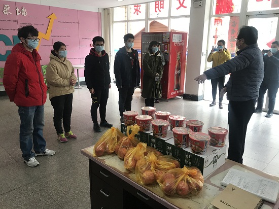 宋明順詳細了解了國際學生的生活情況和食品供應情況,給學生發放牛奶、水果,并作了簡短交流。程剛囑咐留校的同學們調整好心態,調節好學習生活節奏,還給學生發放了牛奶、水果。學校領導都非常關心留校學生的生活、學習情況,多次要求后勤保障組確保學生的日常生活必需品供應,密切關注、及時幫助解決留校學生遇到的困難和問題。