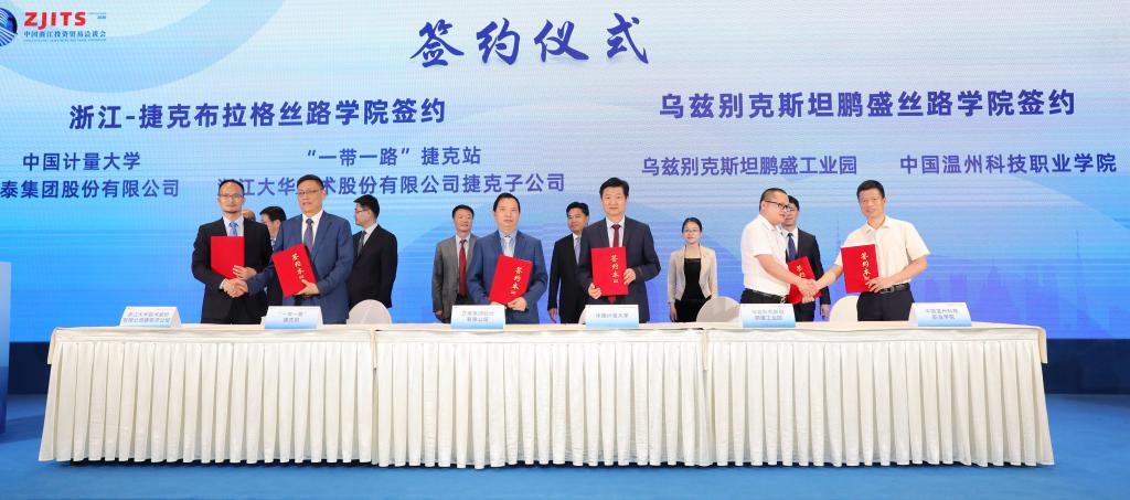 會上舉行了我校與歐洲華捷發展有限公司(“一帶一路”捷克站)、正泰集團股份有限公司、浙江大華技術股份有限公司捷克子公司共建“浙江-捷克布拉格絲路學院”簽約儀式。宋明順校長與浙江華捷投資發展有限公司(“一帶一路“捷克站)董事長傅春晗,正泰集團股份有限公司行政與公共事務部副總經理、正泰大學堂副教務長廖毅,浙江大華技術股份有限公司公共事務部華東區域總監李道良簽約。
