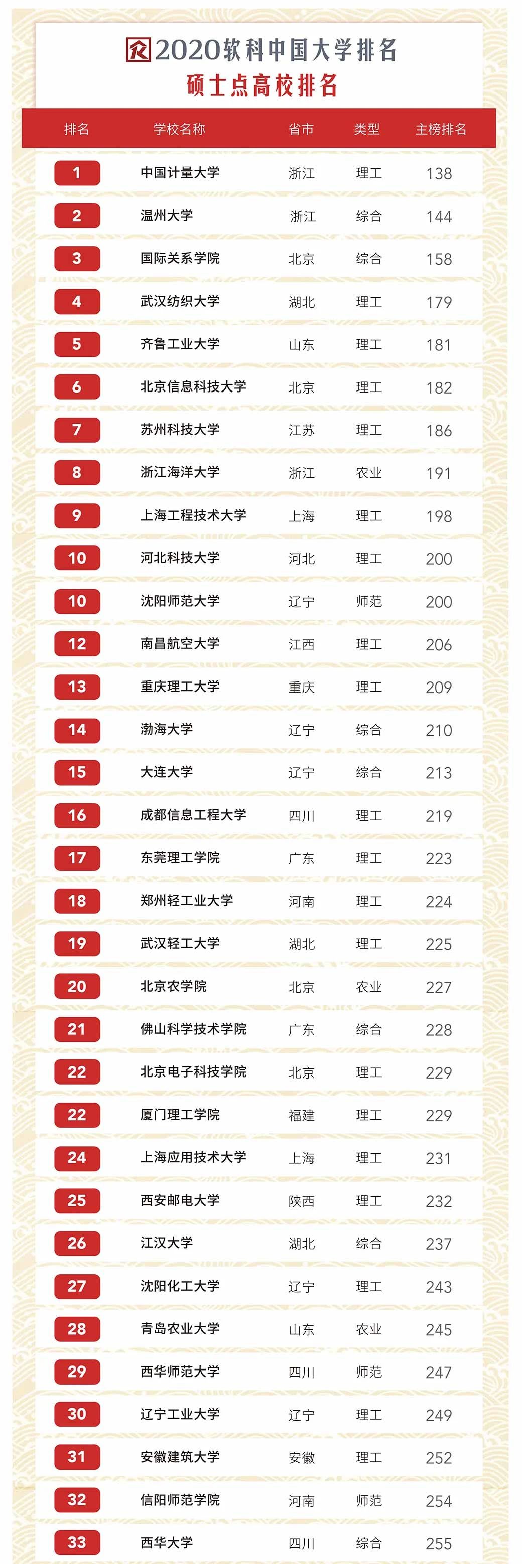 在5月15日軟科發布的2020軟科中國大學排名中,單獨提取了有碩士點,但暫無博士點的高校,經統計共97所高校。其中,我校和溫州大學、國際關系學院分列前三甲,武漢紡織大學位居第4名,齊魯工業大學排名第5。
