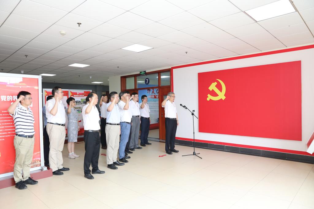 中心大廳內,大幅中國共產黨黨旗上,鐮刀和錘頭組成的黨徽金黃醒目,校黨委書記張土喬領誓,校黨委理論學習中心組成員們整齊列隊、舉起右拳,面向黨旗莊嚴宣誓,鏗鏘誓言抒發著激昂心頭的真摯情感。大家一致認為,這次重溫入黨誓詞,是一場強化黨員意識、強化黨員領導干部責任和使命意識的政治宣誓,是一堂生動的學習課。