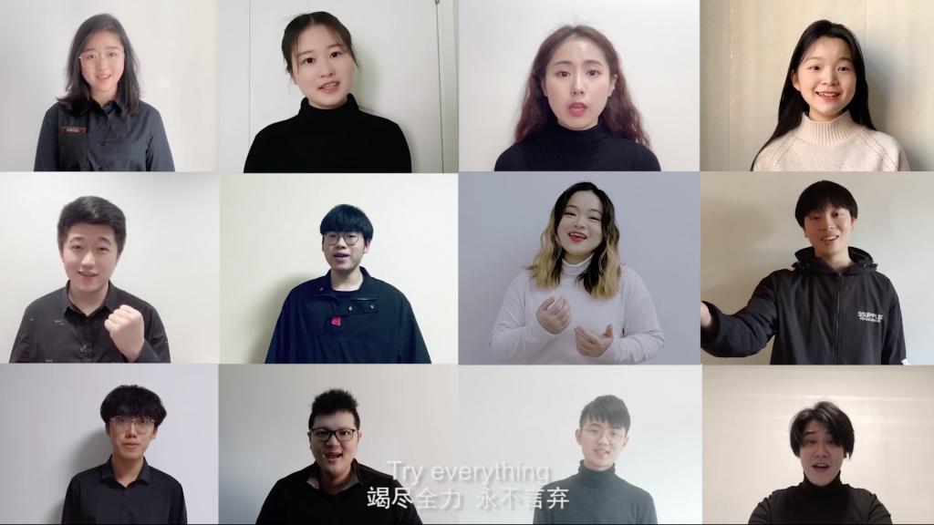 面對突如其來的疫情,我校均鐘合唱團(tuán)的師生用阿卡貝拉《云合唱Try everything》表達(dá)對所有逆行者、堅(jiān)守者、奉獻(xiàn)者的敬意和祝福。歌曲分6個(gè)聲部,在施淑靜老師的指揮下,僅由14位成員線上同步錄制完成。歌曲曲調(diào)歡快,演唱富有朝氣,是一個(gè)充滿正能量的視頻作品。該歌曲同時(shí)入選學(xué)習(xí)強(qiáng)國平臺《全國校園抗擊疫情主題原創(chuàng)歌曲展播(四)》。