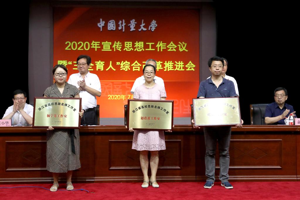 會上,進行了省高校思想政治理論課名師工作室授牌儀式,黨委書記張土喬,黨委副書記肖剛、程剛向趙蓓茁工作室、隋金波工作室和楊寧芳工作室等三個浙江省高校思政名師工作室主持人授牌。