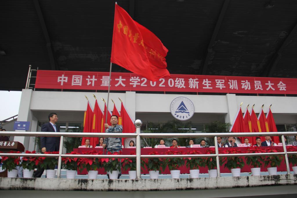 會上,葛洪良向軍訓師鄭重授旗。陳劍波宣讀軍訓師建制和任命書。軍訓教官代表與新生代表依次上臺發言。