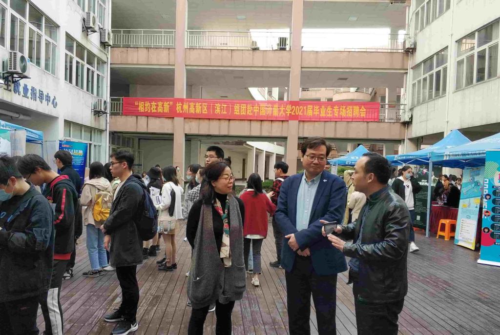 為更好促進量大畢業(yè)生更充分和更高質(zhì)量就業(yè),為畢業(yè)生和濱江用人單位搭建溝通交流平臺,更好地滿足畢業(yè)生多元化的求職需求,2020年11月4日,“相約在高新”中國計量大學(xué)2020年畢業(yè)生秋季招聘會(濱江專場)在我校啟明活動中心室外廣場舉行。本次招聘會由中國計量大學(xué)、杭州市高新區(qū)(濱江)人才開發(fā)中心主辦,校就業(yè)指導(dǎo)中心承辦。校黨委副書記程剛來到現(xiàn)場指導(dǎo)、詢問招聘會情況。