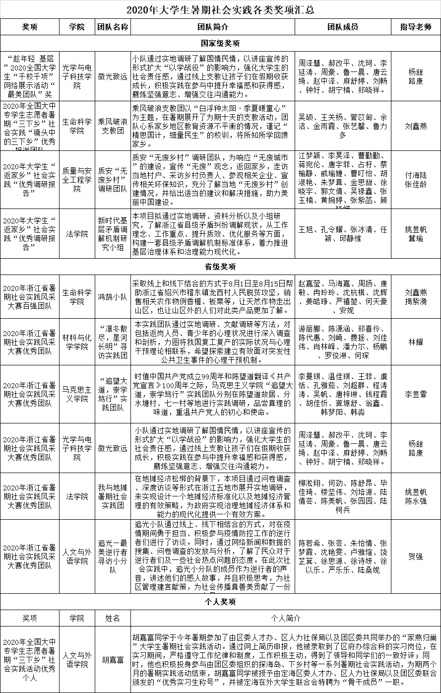 為推進(jìn)社會(huì)實(shí)踐活動(dòng)深入開展,傳播和展現(xiàn)2020年全國(guó)大中專學(xué)生志愿者暑期“三下鄉(xiāng)”社會(huì)實(shí)踐活動(dòng)成果,近日?qǐng)F(tuán)中央、中國(guó)青年報(bào)等主辦單位公布了2020年暑期“三下鄉(xiāng)”社會(huì)實(shí)踐評(píng)比結(jié)果,我校喜獲多項(xiàng)省級(jí)、國(guó)家級(jí)榮譽(yù)。