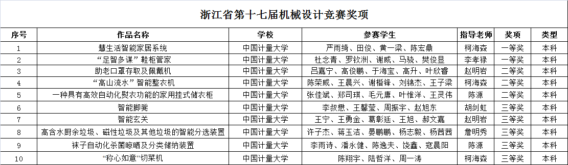近日,以“智慧家居、幸福家庭”為主題的浙江省第十七屆“敏實(shí)杯”大學(xué)生機(jī)械設(shè)計(jì)競(jìng)賽決賽結(jié)果公布,經(jīng)過(guò)激烈角逐,我校最終取得省一等獎(jiǎng)2項(xiàng)、二等獎(jiǎng)3項(xiàng)、三等獎(jiǎng)5項(xiàng)的好成績(jī)。