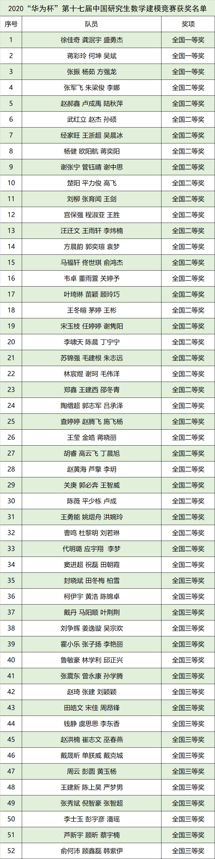 近日,“華為杯”第十七屆中國研究生數學建模競賽成績正式發布,我校共組織65支隊伍參賽,獲全國一等獎3項,全國二等獎31項,全國三等獎18項,獲獎率達80%,總成績在參賽的456個研究生培養單位中按積分排名位列第23,這是我校首次獲得3項全國一等獎,將我校的一等獎名額全部收入囊中。學校獲優秀組織獎,指導教師蔣偉峰獲評“先進個人”稱號。