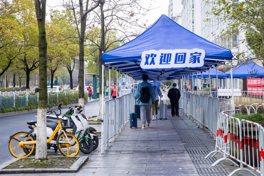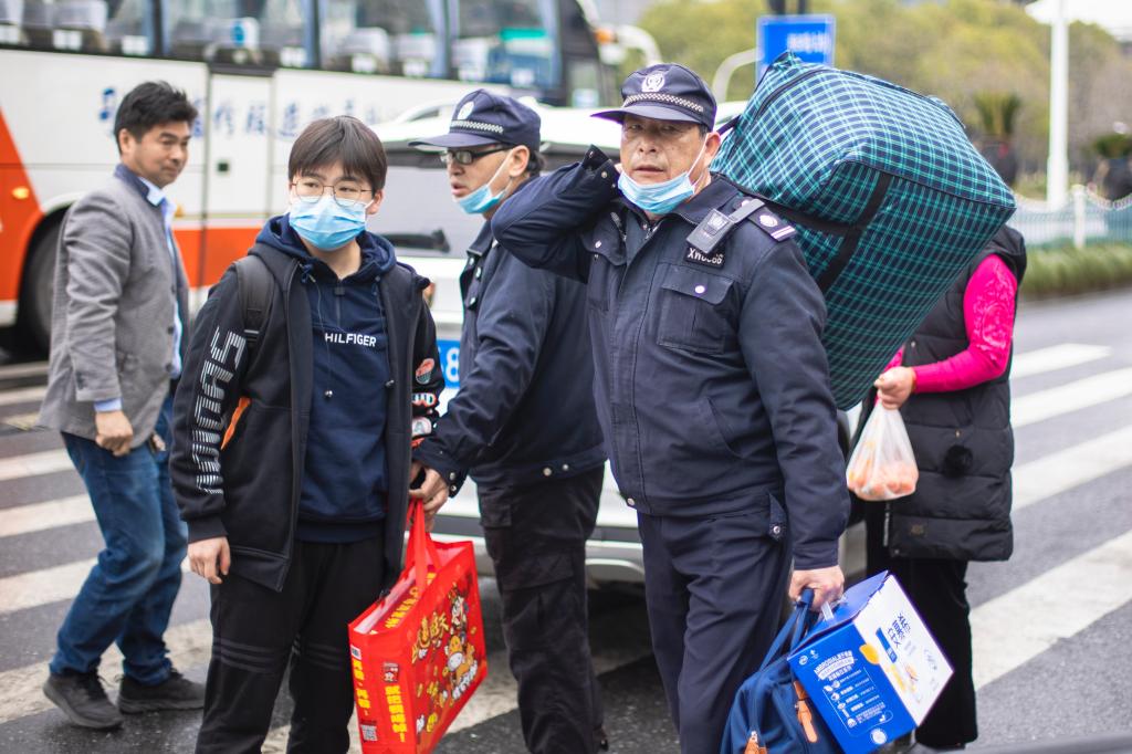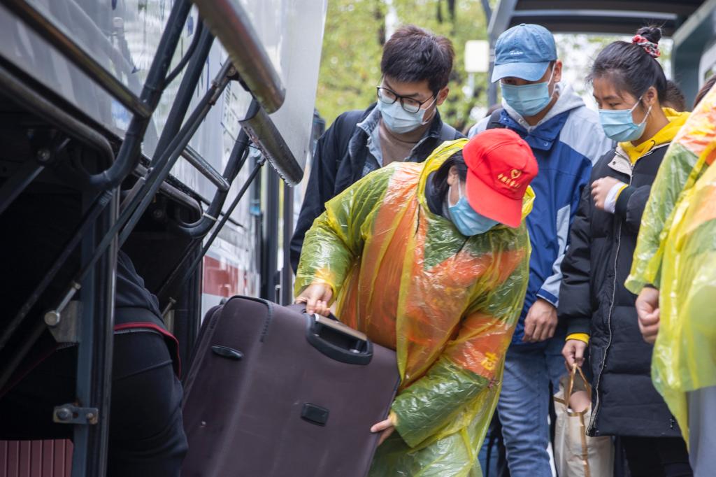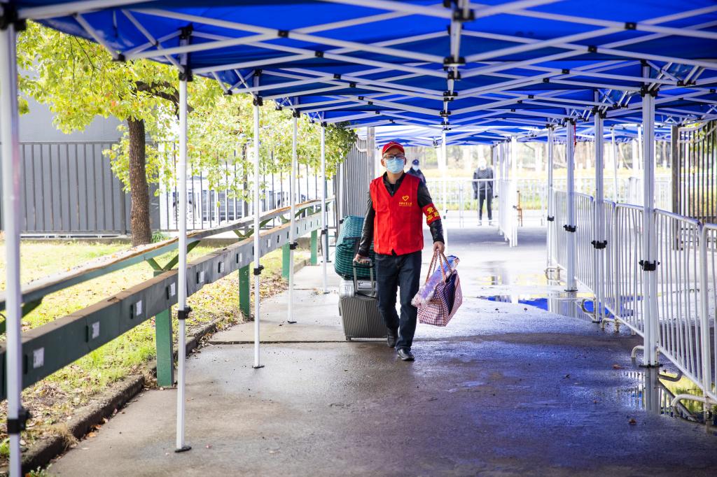 學(xué)校在地鐵1號線“文澤路”站A口設(shè)有校車定點(diǎn)接站服務(wù)。教工黨員志愿者們身著量大紅馬甲,扛起學(xué)生的大包小包,細(xì)致認(rèn)真地做好一系列志愿服務(wù)。生命科學(xué)學(xué)院19級食品質(zhì)量與安全專業(yè)的舒煥琪來自衢州,中午11:30左右,她在志愿者的指引下順利坐上了地鐵口的接站車返校,“下車時司機(jī)師傅還幫忙拿行李了?!?/p>