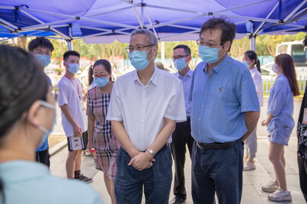 9月4日,我校迎來了全國31個(gè)省份及港澳臺(tái)地區(qū)的2021級(jí)新生。校黨委書記張土喬,黨委副書記程剛,副校長葛洪良、王迪釗,校黨委委員、研究生院院長、現(xiàn)代科技學(xué)院黨委書記張勇及相關(guān)部門負(fù)責(zé)人來到迎新現(xiàn)場,對(duì)各位新生和家長表示歡迎,向工作人員和志愿者表示慰問,并詳細(xì)了解招生和報(bào)到情況。在學(xué)生寢室,他們親切詢問新生家在哪里,入住是否順利,對(duì)大學(xué)生活有怎樣的期待。
