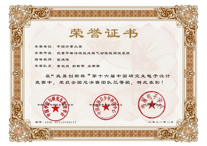 指導(dǎo)老師精心指導(dǎo)選手改進和完善國賽參賽作品,為在全國總決賽中賽出水平,取得優(yōu)異成績奠定了基礎(chǔ)。在全國總決賽的激烈競爭中,憑借參賽隊伍的出色表現(xiàn),最終,“太浪隊”(機電工程學(xué)院,參賽隊員:童迪科,曾文濤,林如斌,指導(dǎo)老師:施閣)的“基于振動能和太陽能的多源環(huán)境俘能裝置”與“嘟嘟隊”(計量測試工程學(xué)院,參賽隊員:董雙雙,彭衡芾,王晴晴,指導(dǎo)老師:張洪軍)的“流量平衡法微型風扇氣動性能測試”榮獲全國總決賽團隊三等獎。