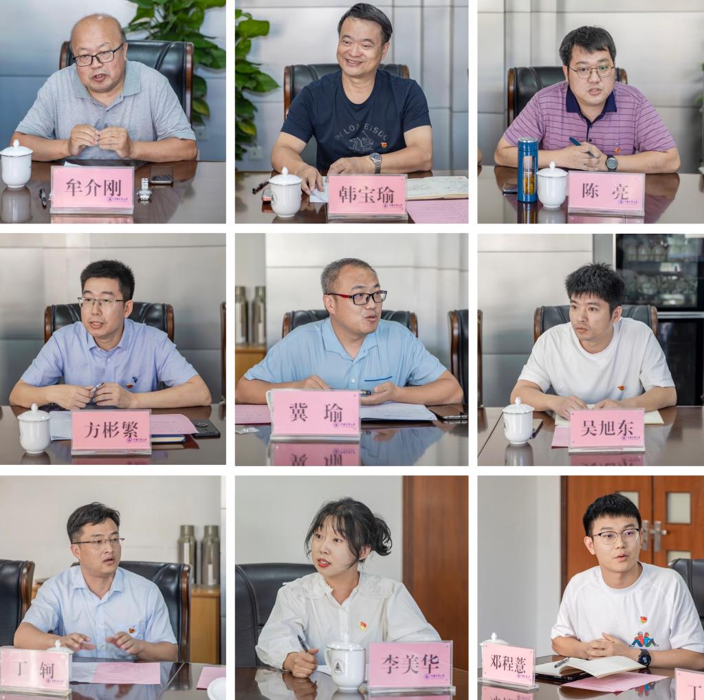 匯報會前,召開了師生黨員代表座談會。計測學院流體裝備與檢測技術研究所黨支部書記牟介剛、生命學院生命系教工黨支部書記韓寶瑜、科技處副處長陳亮、嘉量科技企業管理有限公司副總經理方彬繁、國家知識產權培訓(浙江)基地副主任冀瑜、經管學院辦公室主任吳旭東、后勤服務中心辦公室主任丁軻、馬克思主義學院2020級研究生李美華、標準化學院2019級本科生鄧程薏分別匯報了自身學習“七一”重要講話精神,踐行“三為”實踐活動的感想和體會。