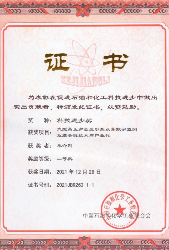 12月28日,中國石油和化學(xué)工業(yè)聯(lián)合會在武漢召開“全國石油和化工科技創(chuàng)新大會”。大會表彰2021年度我國石油和化工行業(yè)科技創(chuàng)新的獲獎單位和個人。來自全國重點(diǎn)石油和化工企業(yè)、科研單位、大專院校,以及新聞媒體的共計300余名代表參加會議。我校牟介剛教授、吳登昊副教授、谷云慶副教授共同完成的項目“大型高壓加氫注水泵及其數(shù)字監(jiān)測系統(tǒng)關(guān)鍵技術(shù)與產(chǎn)業(yè)化”獲中國石油和化學(xué)工業(yè)聯(lián)合會科技進(jìn)步二等獎。