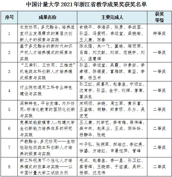 近日,浙江省教育廳公布了2021年省教學(xué)成果獎(jiǎng)名單(浙教函〔2022〕10號(hào)),我校榮獲特等獎(jiǎng)1項(xiàng)、一等獎(jiǎng)3項(xiàng)、二等獎(jiǎng)4項(xiàng),獲獎(jiǎng)總數(shù)在浙江省省屬高校位于前列。