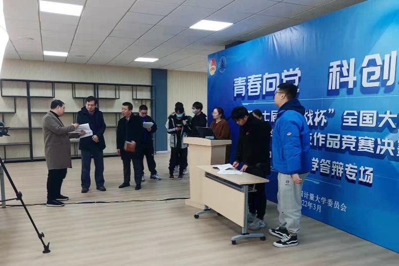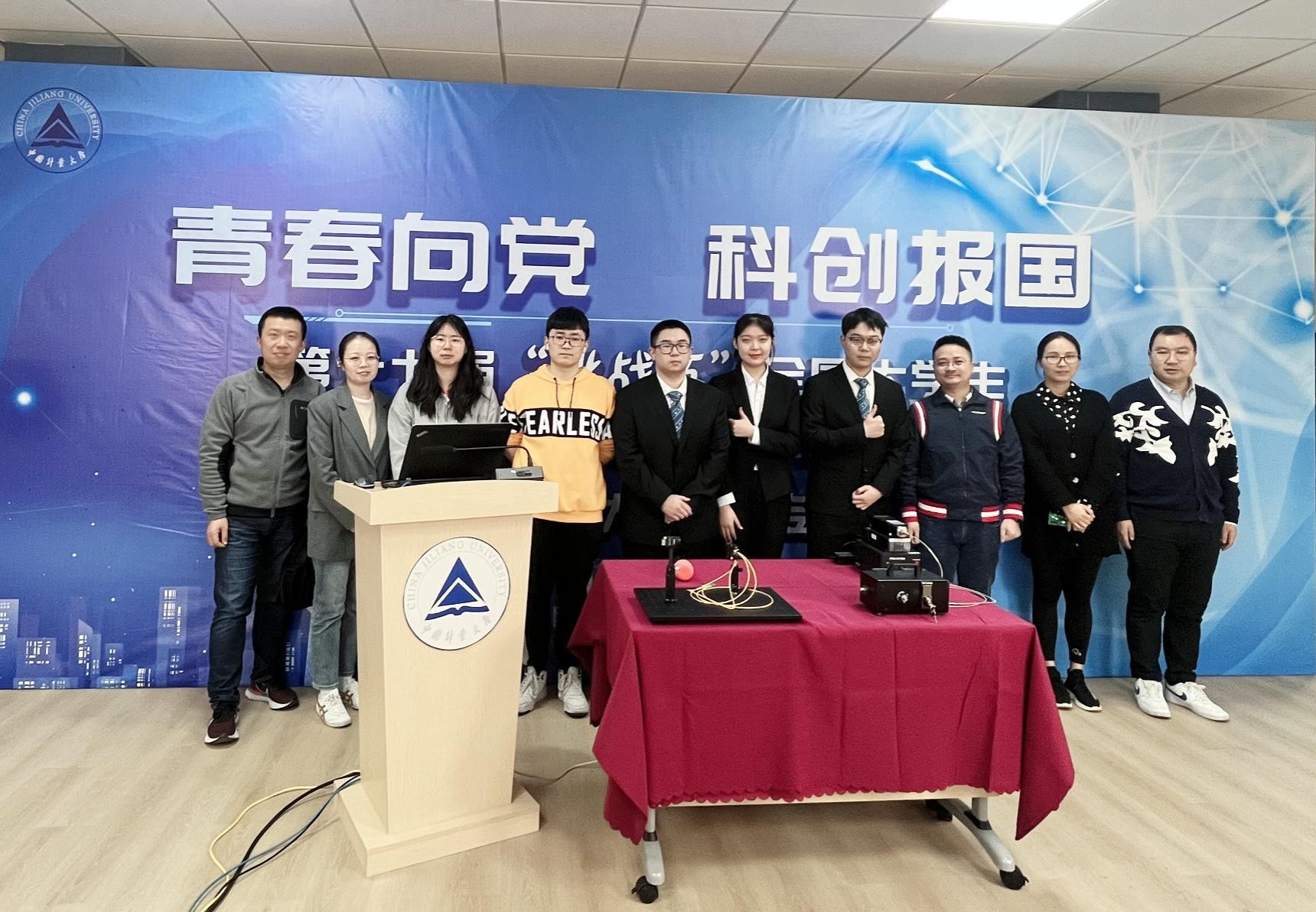 線上答辯籌備和模擬階段,校黨委副書記程剛親臨現場關心和慰問參賽師生,希望同學們能夠做到賽前緊張磨煉,賽場輕松應戰,以最佳狀態迎接考驗。決賽前,校團委和計測學院有關同志從場地設備設施準備到邀請專家模擬答辯指導等全方位提供支持保障;決賽過程中,參賽學生在賽場上從容應對,以優異的表現獲得評委的認可,最終斬獲佳績。