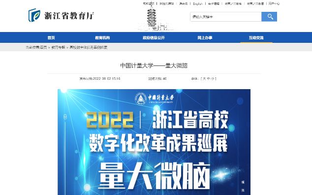 近日,浙江省教育廳開展高校數字化改革工作成果巡展活動,經過專家評審遴選優秀成果,我校“量大微腦”案例成功入選并在教育廳官方網站線上展出。“量大微腦”成果案例充分展示了我校“數智量大,唯實唯先”的最新改革成果,體現了學校數字化改革新要求:深化大數據應用,推進信息系統全面整合,實現數據搜集、完善數據標準,促進數據有效分享。