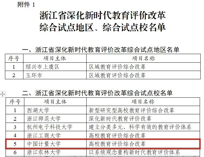 9月6日,中共浙江省委教育工作領導小組秘書組公布了浙江省深化新時代教育評價改革試點項目名單,我校成為省內6所綜合試點本科高校之一。