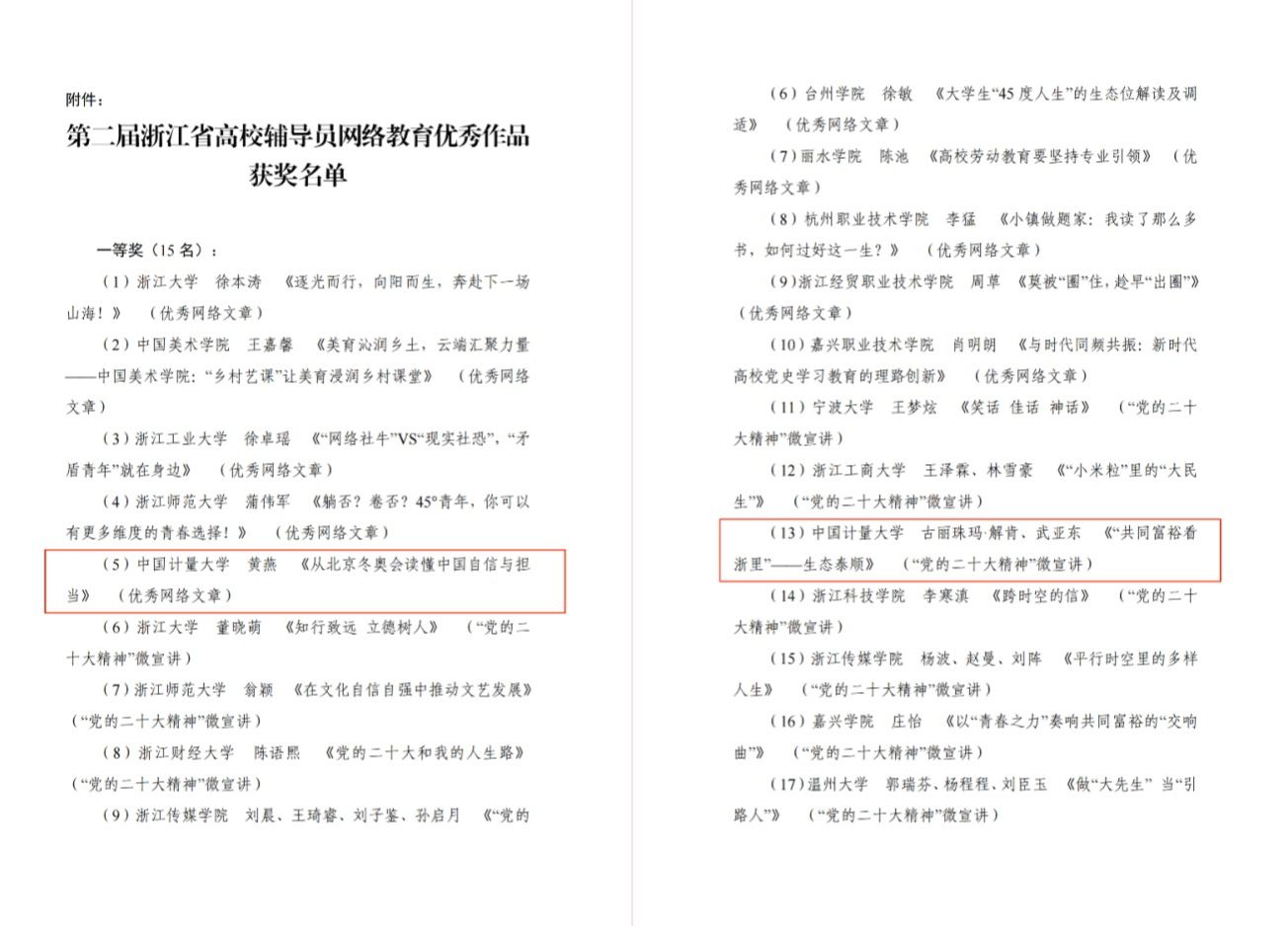 第二屆浙江省高校網(wǎng)絡(luò)教育優(yōu)秀作品大賽獲獎名單-中國計量大學(xué)