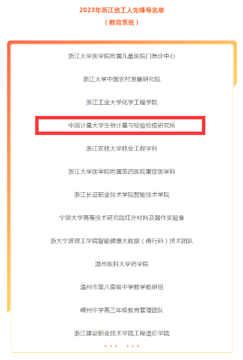 3月31日,浙江省總工會印發(fā)《關于表彰 2023 年浙江省五一勞動獎狀、獎章和工人先鋒號的決定》,我校生物計量與檢驗檢疫研究所獲2023年“浙江省工人先鋒號”榮譽稱號。