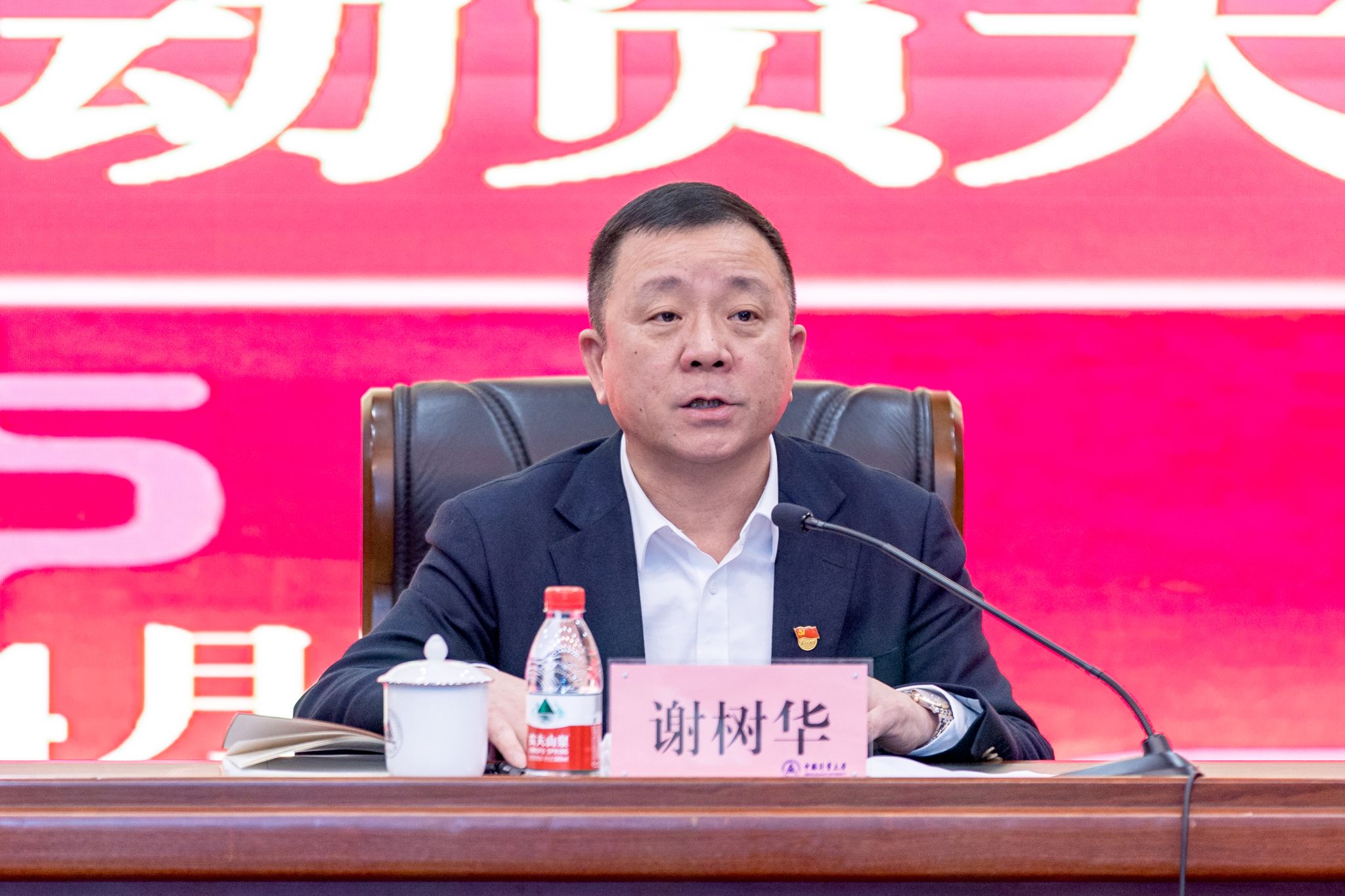 學校黨政領導班子成員、全體中層干部、民主黨派和統戰團體負責人、“雙帶頭人”教師黨支部書記等參加主會場會議。全校師生黨員在視頻分會場集中觀看大會直播。