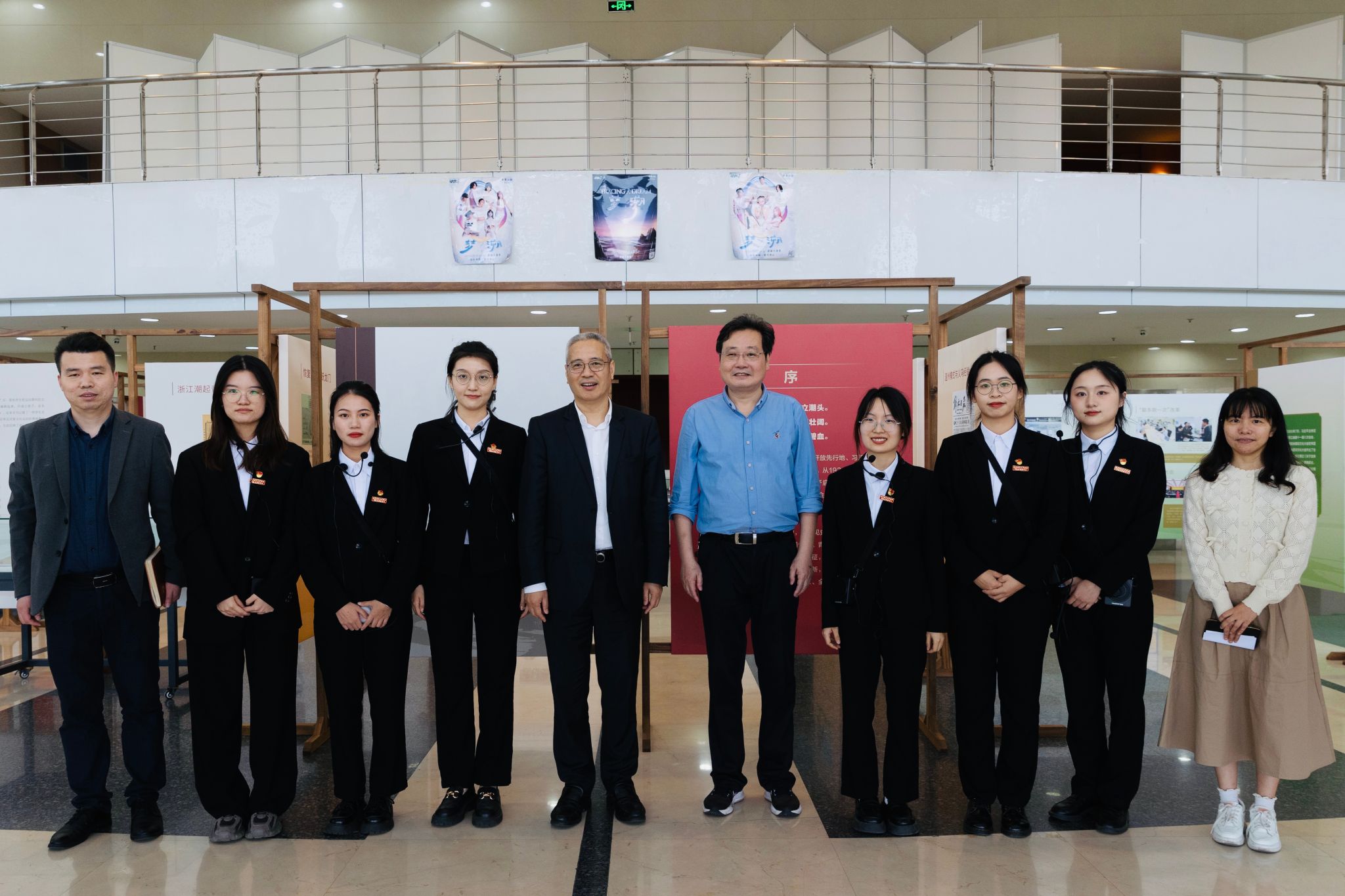 5月10日下午,校黨委書記張土喬、校黨委副書記程剛來到嘉量大會堂一樓大廳,參觀“紅船從‘浙’里起航——‘革命文物進高校’大型巡展,聽取學校馬克思主義學院“90、00”理論宣講團的講解,辦公室、宣傳部等職能部門負責人陪同參觀。