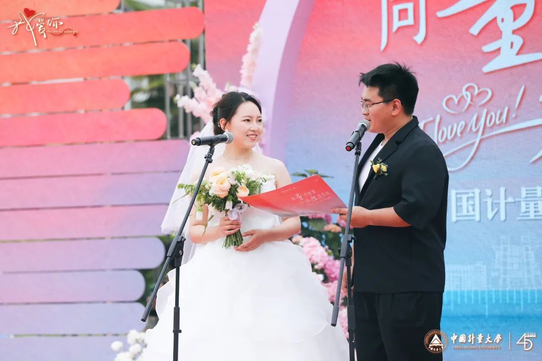 2023年5月20日,不僅是人們眼中溫馨浪漫的告白日,同時也是第24個“世界計量日”,一個專屬于計量人的節(jié)日。在這個特殊的日子里,45對新人重回母校,參加“同量天地寬 共度日月長”中國計量大學(xué)第二屆校友集體婚禮,共同講述“愛與計量”的故事。