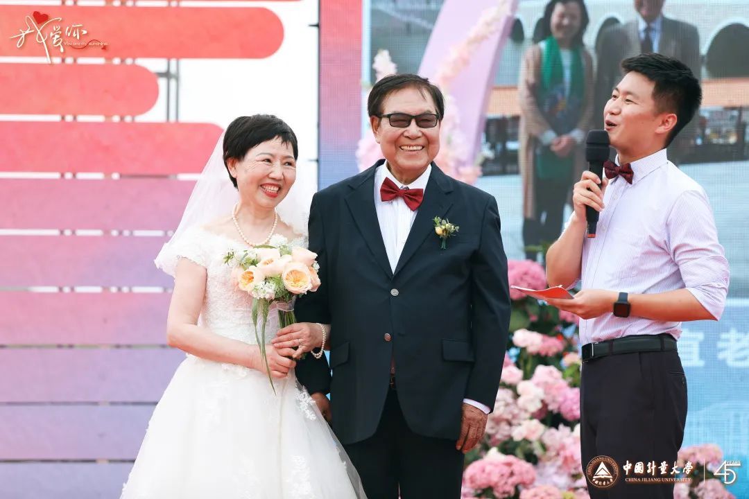 愛就是一路上互相攙扶,共同成長,風(fēng)雨同舟。離退休教師楊汝月、熊靜宜是這次集體婚禮上婚齡最長的夫妻,他們是本科同班同學(xué)、研究生同級同專業(yè)同學(xué),都來自浙江。曾經(jīng)同是理學(xué)院教師的他們,已經(jīng)相濡以沫55年。今天,學(xué)校見證他們的“綠寶石婚”,是一份獨有的浪漫。