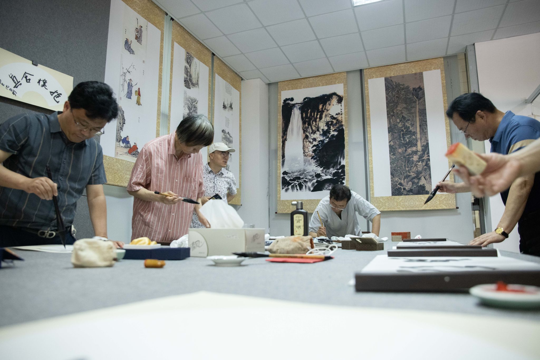 儀式結束后,與會領導、嘉賓、師生參觀了師生作品展和水晶琉璃珍品展。來自書畫界的嘉賓現場開筆,揮毫潑墨,創作了多幅藝術佳作,為此次活動留下了珍貴的見證,也為美術館送上美好的祝愿。
