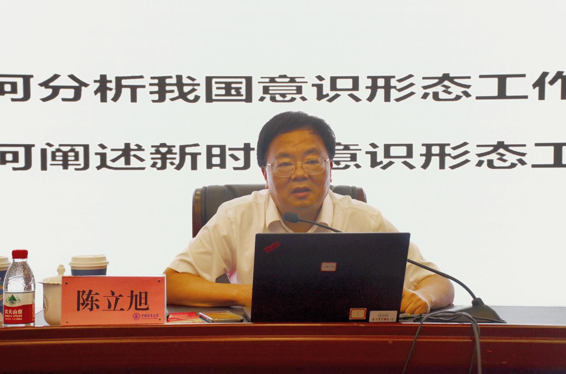 陳立旭以《習近平關于意識形態工作重要論述》為題,從“意識形態工作是黨的一項極端重要的工作”“當前我國意識形態領域面臨的新形勢”“當前加強意識形態工作的使命任務”三個方面深刻闡釋習近平關于意識形態工作的重要論述精神,系統分析了當前意識形態工作的主要任務,并從“敢于亮劍、敢于斗爭”“明確不同性質,采取不同策略”“增強吸引力感染力”三個方面為做好新時代意識形態工作提出建議。