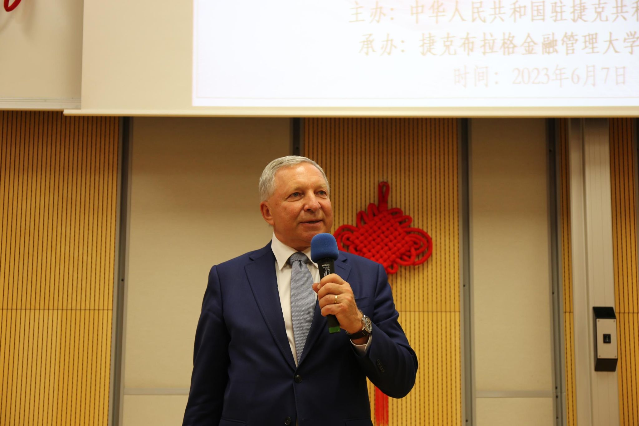 馮飚大使在致辭中首先感謝廣大師生對此次比賽的熱情參與和辛勤付出,特別感謝布拉格金融管理大學和孔子學院為本次比賽所作的精心籌備和周到安排,指出“漢語橋”比賽是全球中文學習者最高規格、最具影響力的比賽之一,自2002年以來,“漢語橋”中文比賽吸引了全球120多個國家和地區的150多萬青年學子參與,已經成為世界各地中文學習愛好者溝通交流、展示學習成果的重要平臺,為不同文化背景的年輕人交流思想、增進了解和友誼提供了重要平臺,是國際人文交流的重要品牌活動。青年是國家的未來、民族的希望,中捷關系的未來系于兩國青年。中方一直高度重視并積極推動兩國人文和青年領域的交流合作。中國駐捷克大使館將一如既往,積極支持漢語在捷克的推廣,支持捷克青年學子赴中國留學,支持推進兩國教育領域交流。期待有更多捷克青年朋友學習中文,期待各位參賽選手通過今天的比賽進一步了解中國,成為中捷友好的使者和“天下一家”的踐行者,為促進中捷關系發展作出貢獻。最后他祝愿本次比賽圓滿成功,也祝愿同學們取得優異的成績。