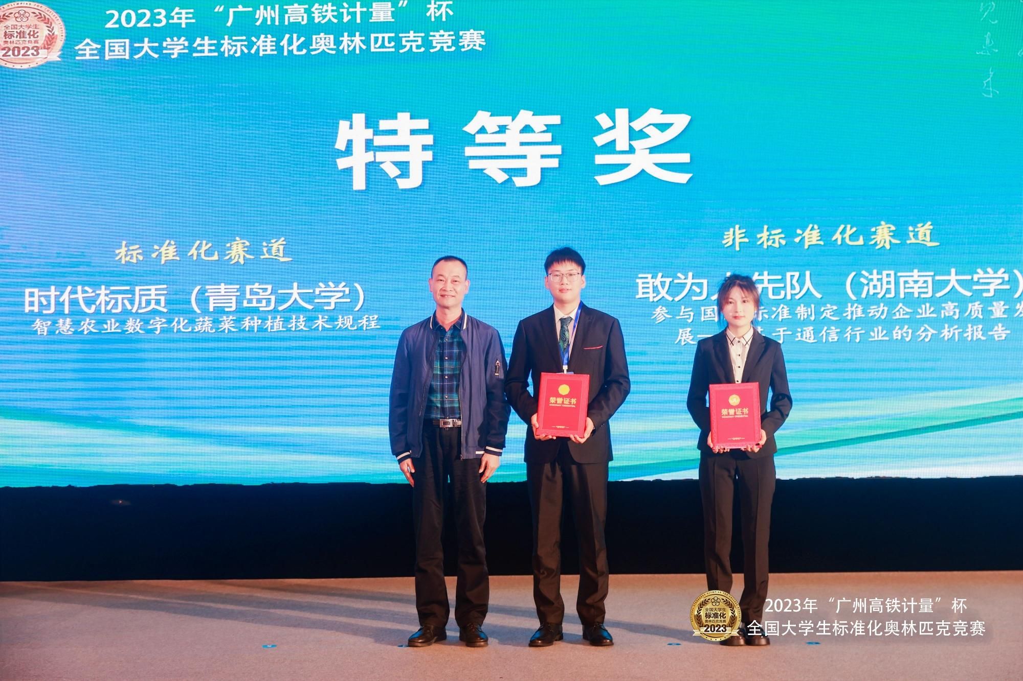 此次大賽兩項(xiàng)特等獎(jiǎng)分別由青島大學(xué)《智慧農(nóng)業(yè)數(shù)字化蔬菜種植技術(shù)規(guī)程》項(xiàng)目和湖南大學(xué)《參與國際標(biāo)準(zhǔn)制定推動(dòng)企業(yè)高質(zhì)量發(fā)展——基于通信行業(yè)的分析報(bào)告》項(xiàng)目獲得。“通過本次競(jìng)賽,不僅加深了標(biāo)準(zhǔn)化知識(shí),提高了實(shí)踐能力、思維創(chuàng)新能力,更塑造了團(tuán)結(jié)協(xié)作、互助互勉精神。我們將再接再厲、勇攀高峰,為推動(dòng)我國標(biāo)準(zhǔn)化事業(yè)的繁榮發(fā)展獻(xiàn)出一份力量!”——湖南大學(xué)獲獎(jiǎng)團(tuán)隊(duì)表示。