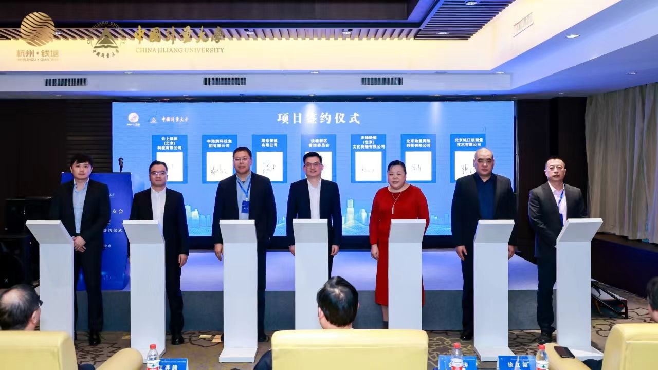錢塘科學城管理辦公室常務副主任謝國鋒與學校對外聯絡處處長、校友辦主任陳子良簽署聯合校友會合作協議。“云上綠洲(北京)科技有限公司”“中海潤科技集團有限公司”等6個在京重點項目與大創(chuàng)小鎮(zhèn)簽約。