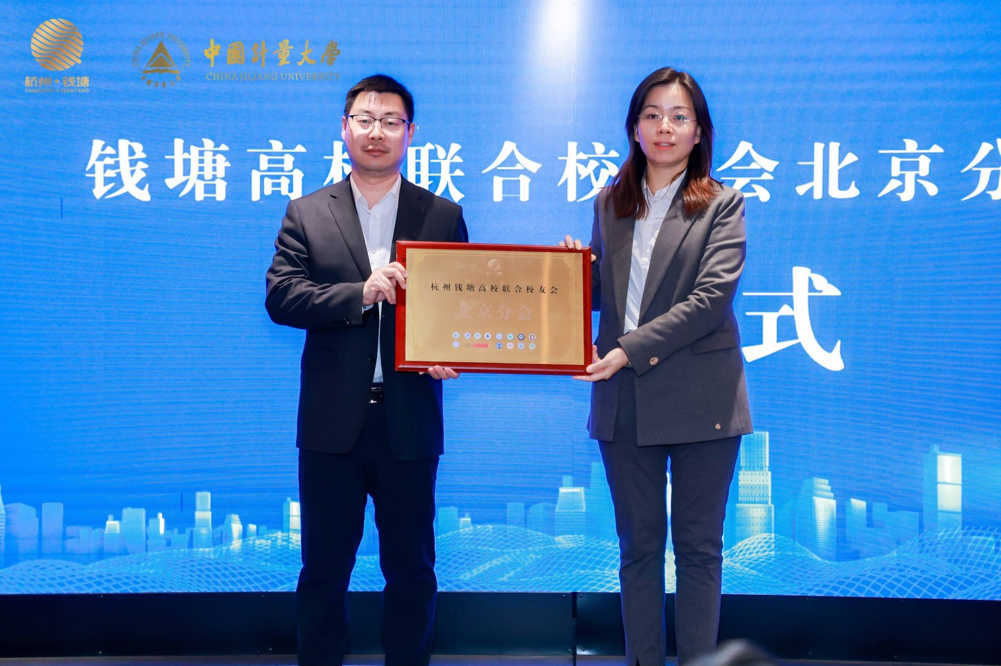 錢塘科學城管理辦公室副主任喻蔚對錢塘區(qū)高校聯合校友會建設方案及政策做簡要介紹。會上舉行了錢塘高校聯合校友會-北京分會授牌儀式和錢塘全球引才合伙人授牌儀式。