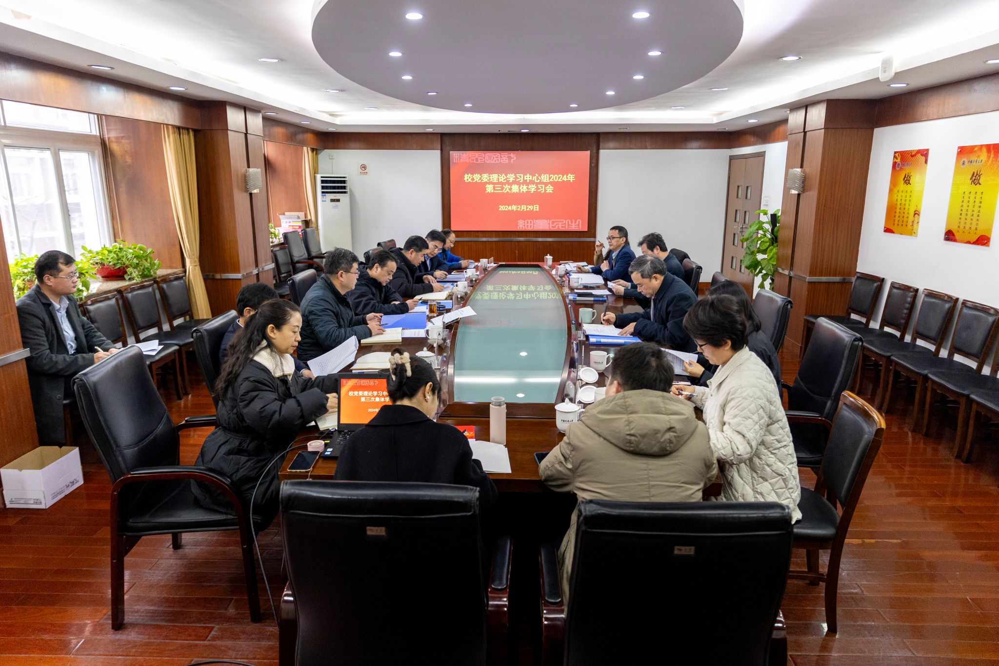 2月29日下午,中國計量大學黨委理論學習中心組舉行新學期首次集體學習會,專題學習習近平總書記在中共中央政治局第十一次集體學習時的重要講話精神和全省“新春第一會”會議精神,校長、黨委副書記徐江榮主持會議,校黨政領導班子成員參加會議。