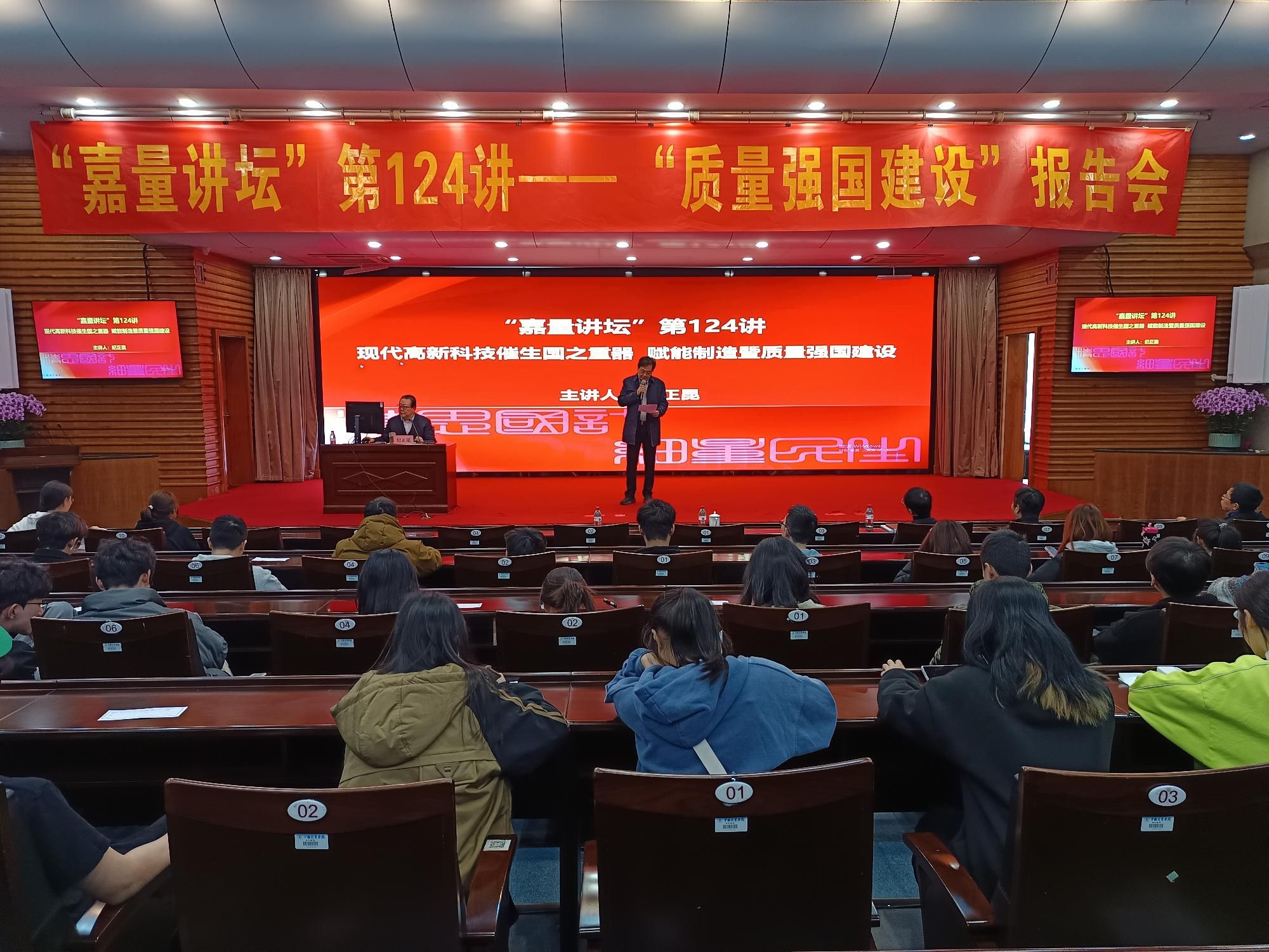 3月13日下午,國家制造強國戰略建設咨詢委員會委員、國家標準化戰略實施專家咨詢委員會執行主任委員、中國標準化專家委員會委員紀正昆教授做客我校“嘉量講壇”,作題為《現代高新科技催生國之重器賦能制造暨質量強國建設》的專題報告。報告會由校黨委副書記程剛主持,兩百多名師生在聞廳二樓報告廳聆聽了報告。
