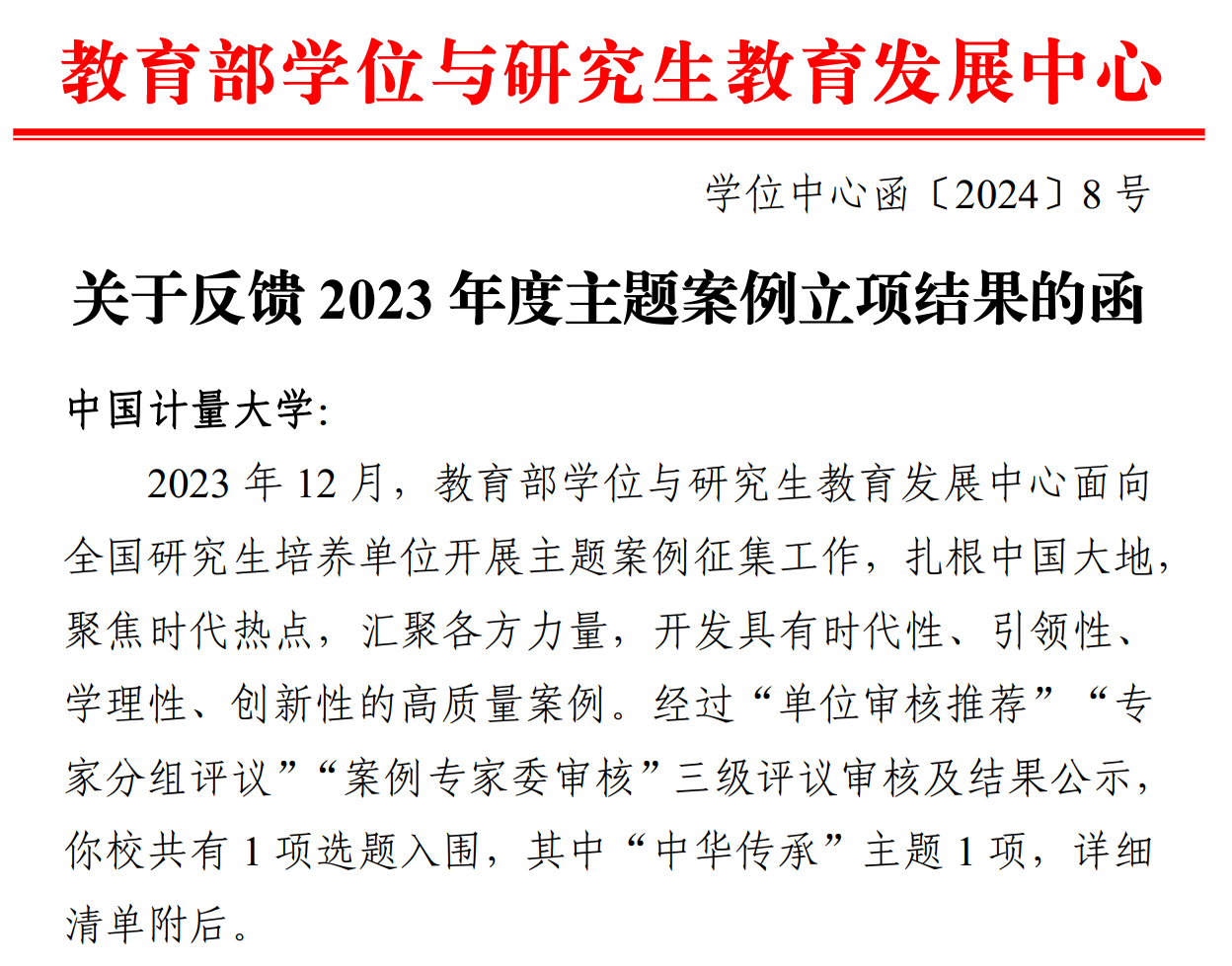 近日,教育部學位與研究生教育發展中心公布了2023年度主題案例立項結果公示名單,我校馬克思主義學院周爽副教授提交的案例《歷史·人物·精神:新時代計量文化傳承與創新的案例探索》獲批教育部2023年度主題案例立項。此次浙江省共計獲批立項案例6個,該案例是我校唯一入選案例,也是我校首次獲批“中華傳承”賽道項目。