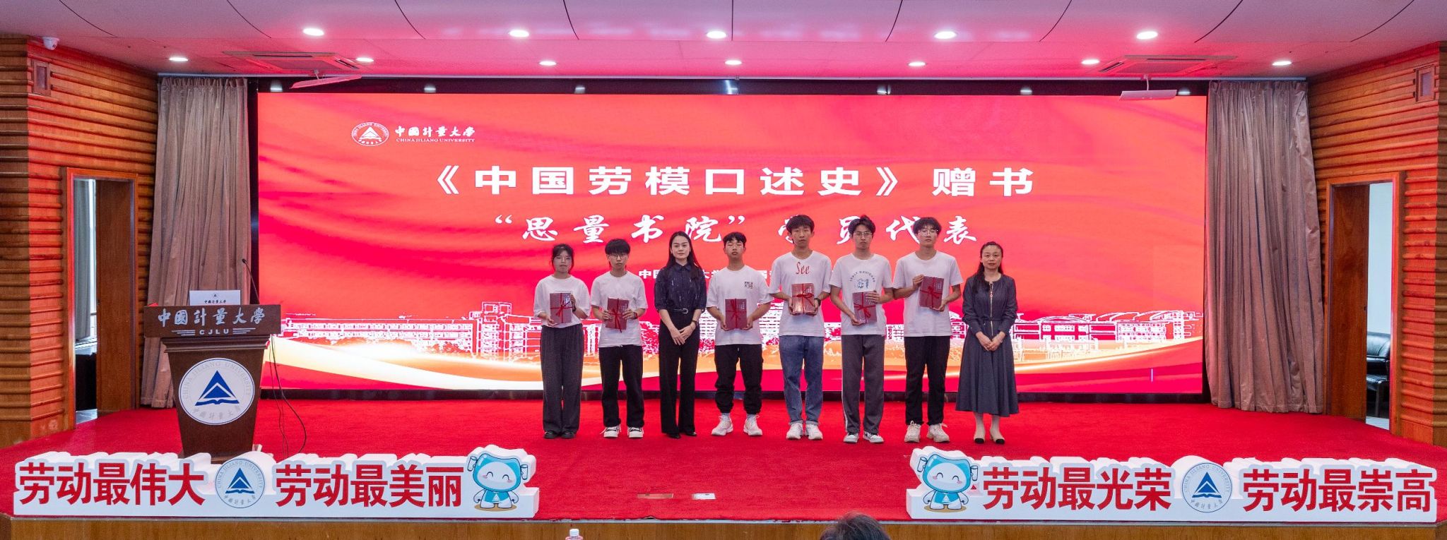 啟動儀式現(xiàn)場,校學(xué)工部部長楊娜和黨的二十大代表、全國檢察業(yè)務(wù)專家章春燕為“思量書院”學(xué)生運營團隊代表贈送了勞模事跡書籍——《中國勞模口述史》。學(xué)校“00”后大學(xué)生理論宣講團成員圍繞浙江省域“循跡溯源”理論宣講的實踐探索,作題為《奮斗的青春最美麗》的主題宣講。