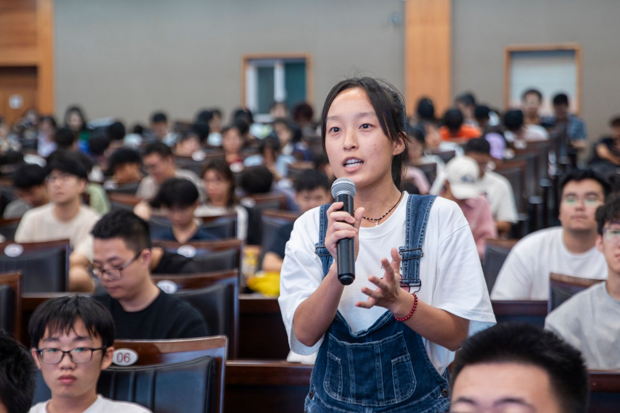 黃峻博士的宣講讓在場的師生深受感動,互動交流環節,學生們紛紛表示要以黃旭華院士為榜樣,學習他的愛國情懷和科研精神,并向黃峻博士獻花表示對黃旭華院士的崇敬與愛戴之情。