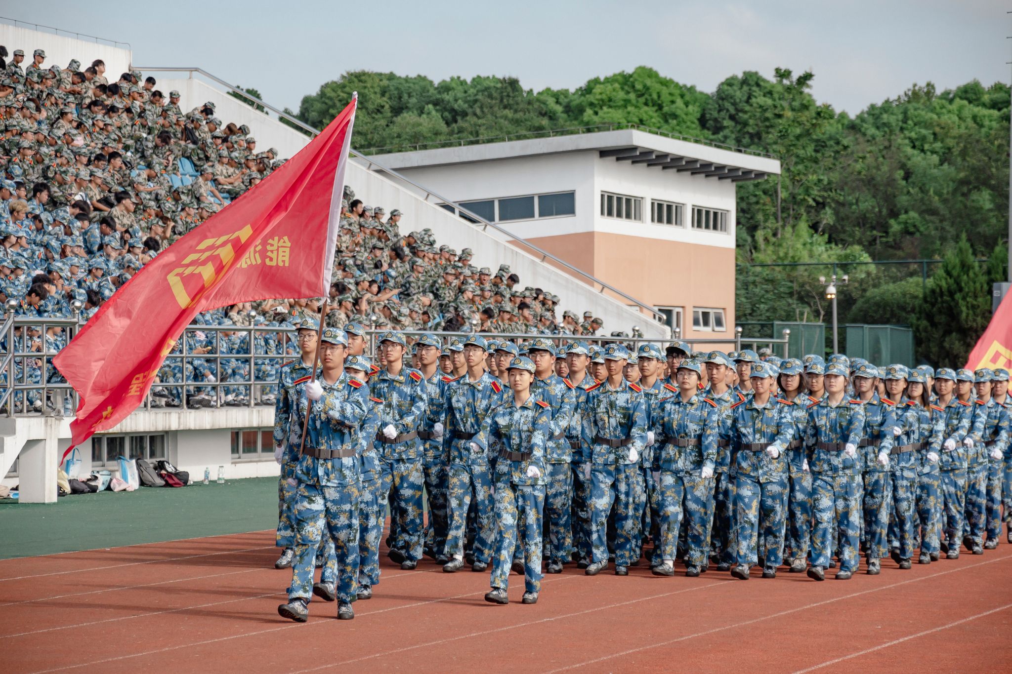 雄心因煉立顯,壯志愈礪沸騰。9月22日上午,我校在北田徑場舉行2024級學生軍訓匯報表演暨總結表彰大會。軍訓師師長李志強、副師長王云飛,校黨委副書記程剛、副校長王新慶等出席本次大會。