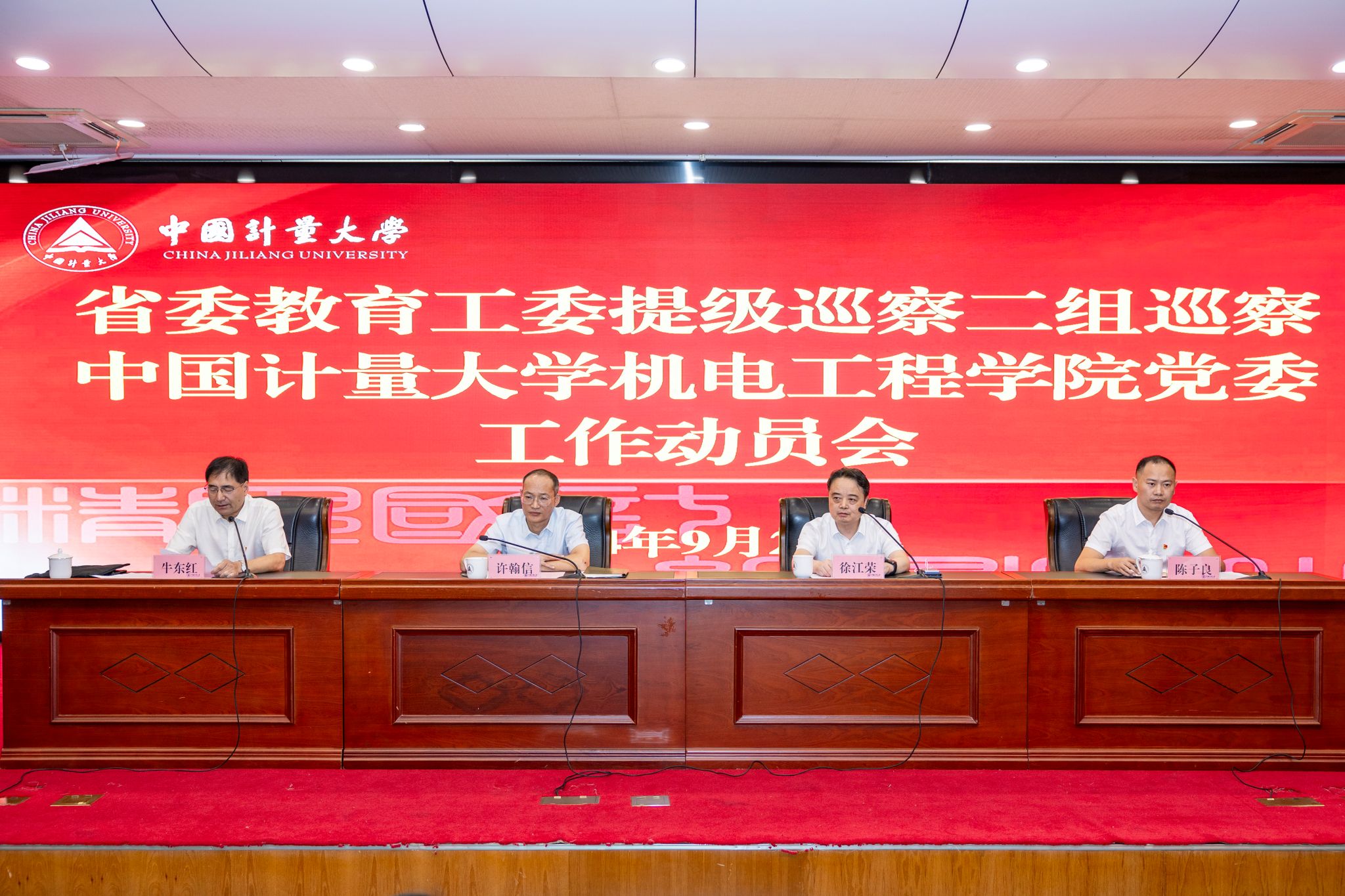 根據(jù)省委教育工委統(tǒng)一部署,9月25日下午,省委教育工委提級巡察二組巡察中國計量大學機電工程學院黨委工作動員會召開。省委教育工委專職副書記、省教育廳黨組副書記許翰信作動員講話,省委教育工委提級巡察二組組長牛東紅介紹巡察工作安排,中國計量大學黨委書記徐江榮作表態(tài)發(fā)言,機電工程學院黨委書記陳子良作表態(tài)發(fā)言,會議由徐江榮主持。