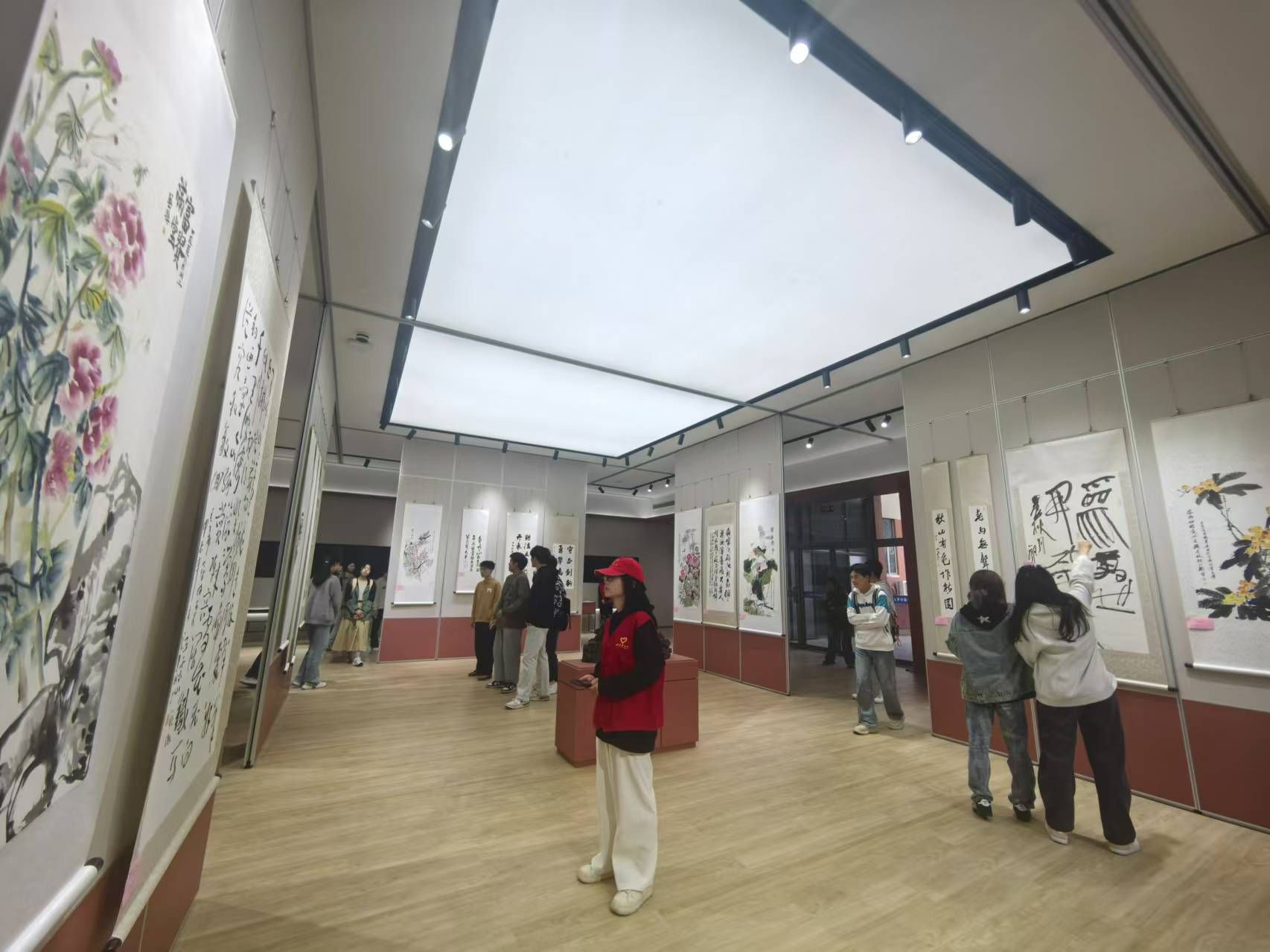 馮時林代表校友總會在開幕式上致辭并介紹入展作品基本情況。他表示,參展的書畫作品表達了大家對學校的深切熱愛和美好祝福,蘊含著對學校未來事業發展蒸蒸日上的美好期待。作品具有很強的觀賞性和感染力,體現了較高的藝術價值。他希望通過書畫展,激發每一位參觀者內心深處對于美的追求和向往,陶冶師生情操,提升師生審美能力,共同創造更加豐富多彩的校園文化生活。