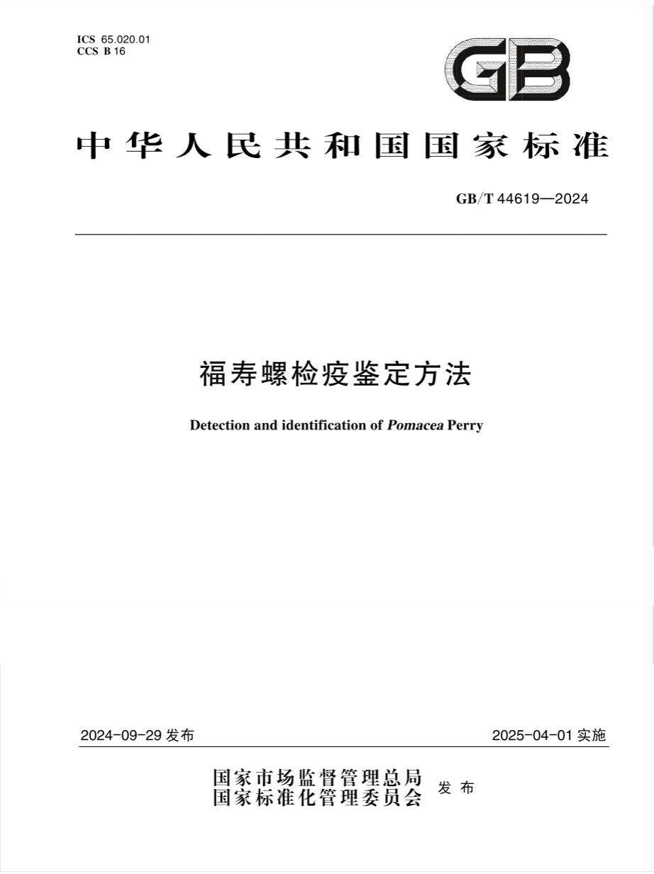 近日,由我校生命學院楊倩倩副教授牽頭,俞曉平研究員、葉子弘教授、許益鵬教授、劉光富博士、李琛副教授參與起草的國家標準《福壽螺檢疫鑒定方法》(GB/T 44619-2024)正式發(fā)布,并將于2025年4月1日正式實施。該標準項目啟動于2021年8月,由我校聯(lián)合上海海關(guān)動植物與食品檢驗檢疫技術(shù)中心、中國海關(guān)科學技術(shù)研究中心、中國檢驗檢疫科學研究院、廣州海關(guān)技術(shù)中心共同完成制定。本標準的發(fā)布實施將為重大外來入侵生物——福壽螺的檢疫鑒定、市場監(jiān)管及防控等提供有力的技術(shù)依據(jù)。