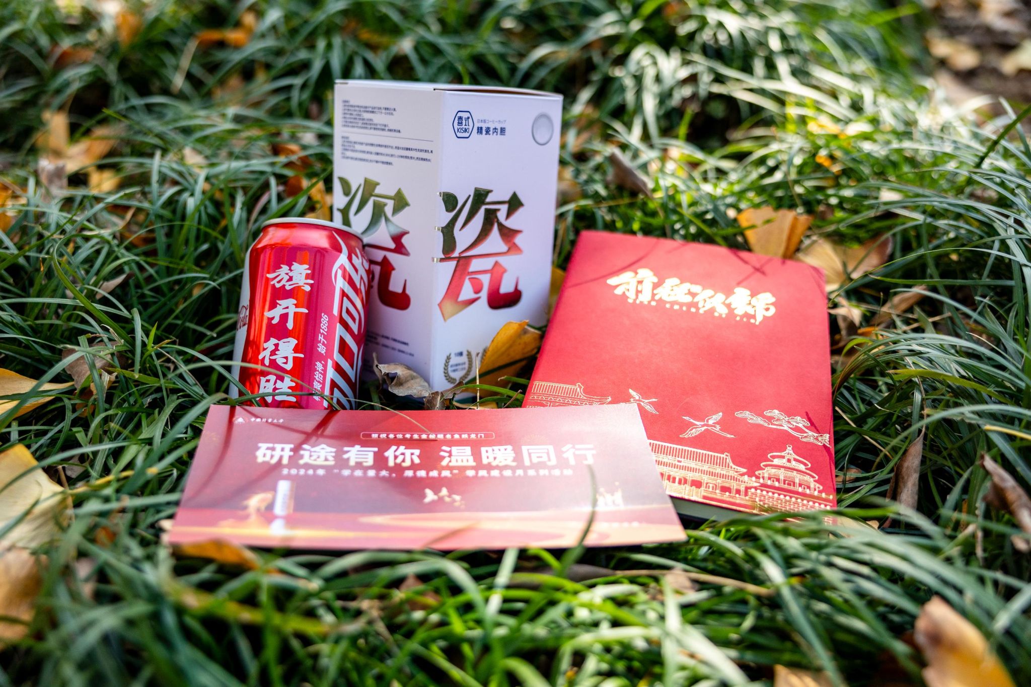 今年的考研大禮包里包含保溫杯、筆記本、定制可樂和祝福卡片。21級光電專業的司雙威是學校“天健育人計劃”的一員,前三年他都在考研慰問活動的幕后,為考研同學傳遞溫暖,今年角色轉變,他成為被慰問的對象。“保溫杯捧在手中,仿佛握住了學校對我們的關懷與期待,在寒冷的冬日,它將持續為我帶來溫暖,恰似學校的支持,源源不斷,永不缺席。” 司雙威說。